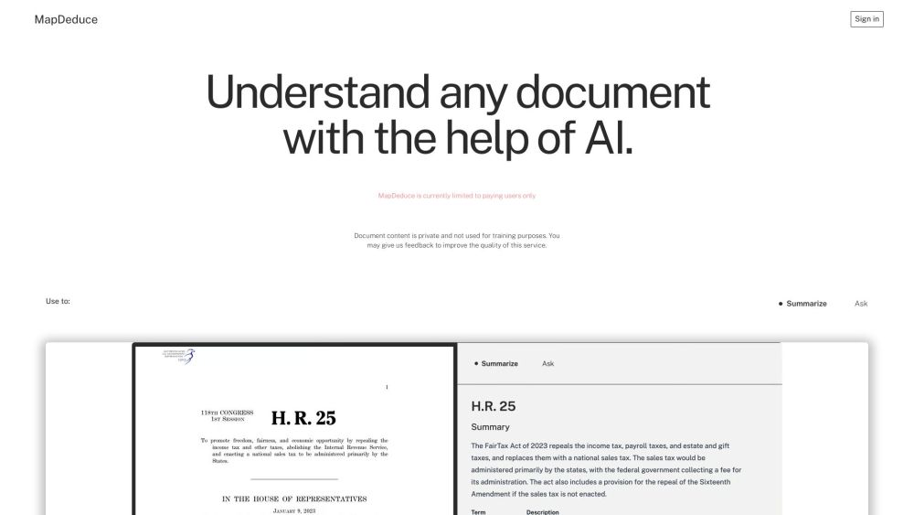 MapDeduce utilizes Artificial Intelligence to assist users in comprehending intricate documents through concise summaries and direct responses.