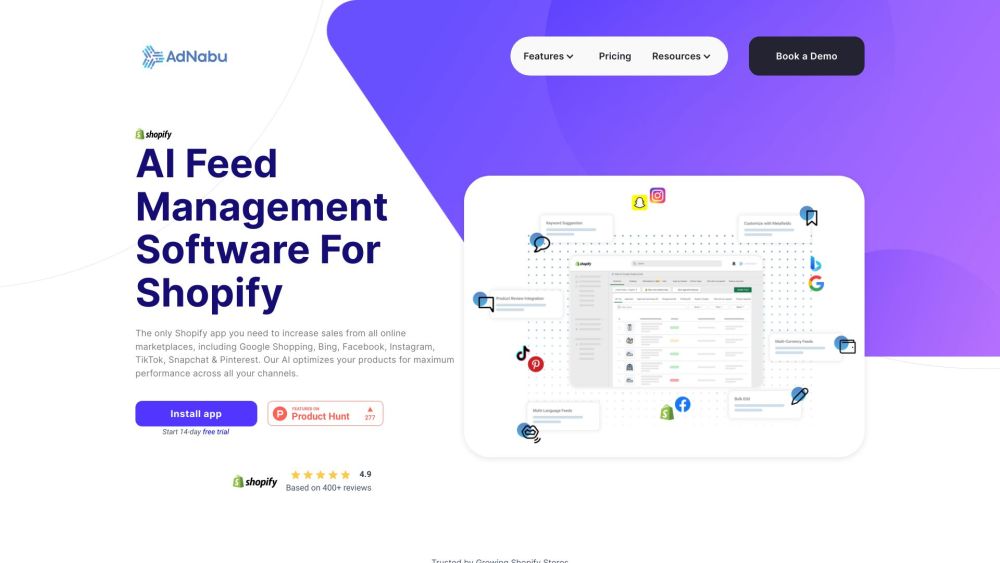 AdNabu is a product feed management tool designed for Shopify, which assists in streamlining and organizing product data feeds across numerous online platforms.