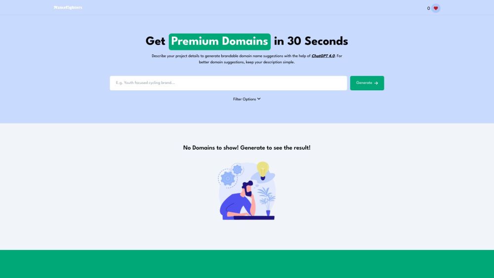 Create unique website name ideas using NameFighters with Artificial Intelligence.