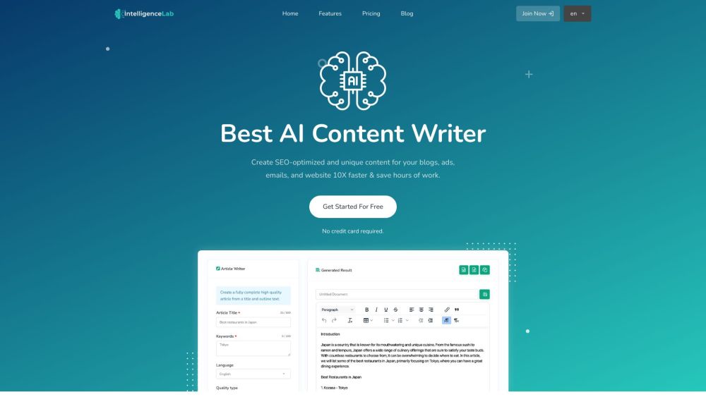 IntelligenceLab - AI Generator is a creative studio that utilizes Artificial Intelligence to produce one-of-a-kind content, pictures, speech-to-text conversion, and coding.