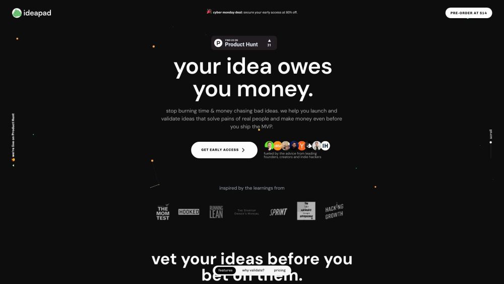Validate ideas and earn money prior to creating the Minimum Viable Product (MVP).