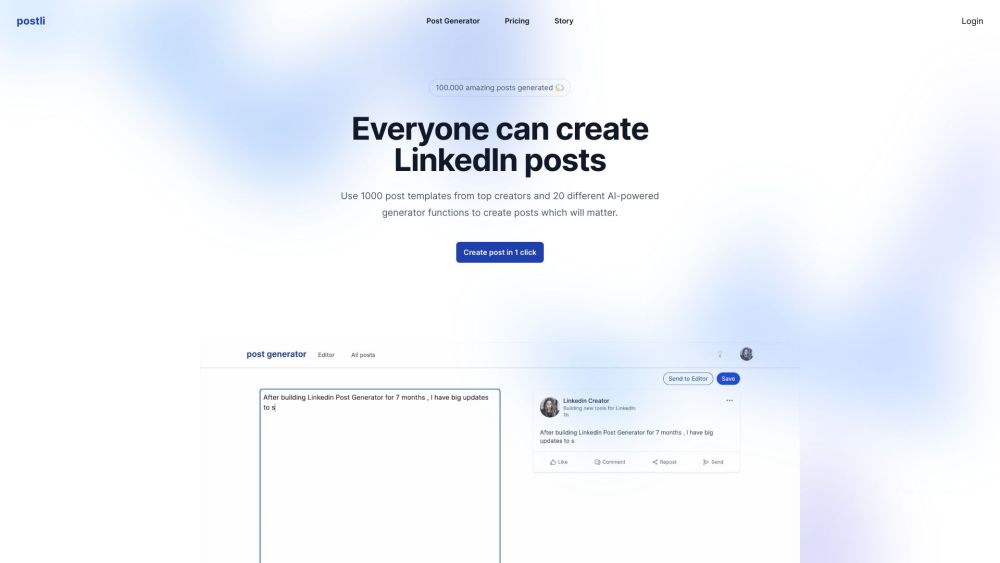 Postli uses AI to help create engaging LinkedIn posts, offering more than 100 customizable templates.