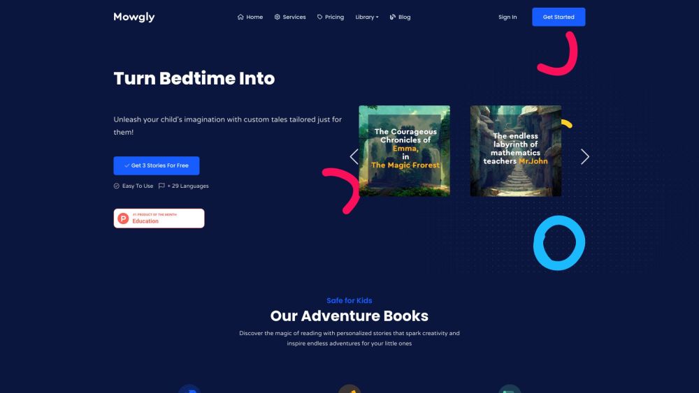 Mowgly makes custom stories for children, igniting creativity and countless adventures.