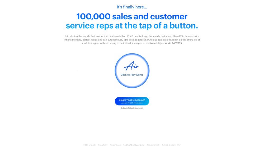 The most advanced AI assistant for sales and customer support, Air is capable of having extremely realistic phone conversations and independently managing tasks across numerous apps.