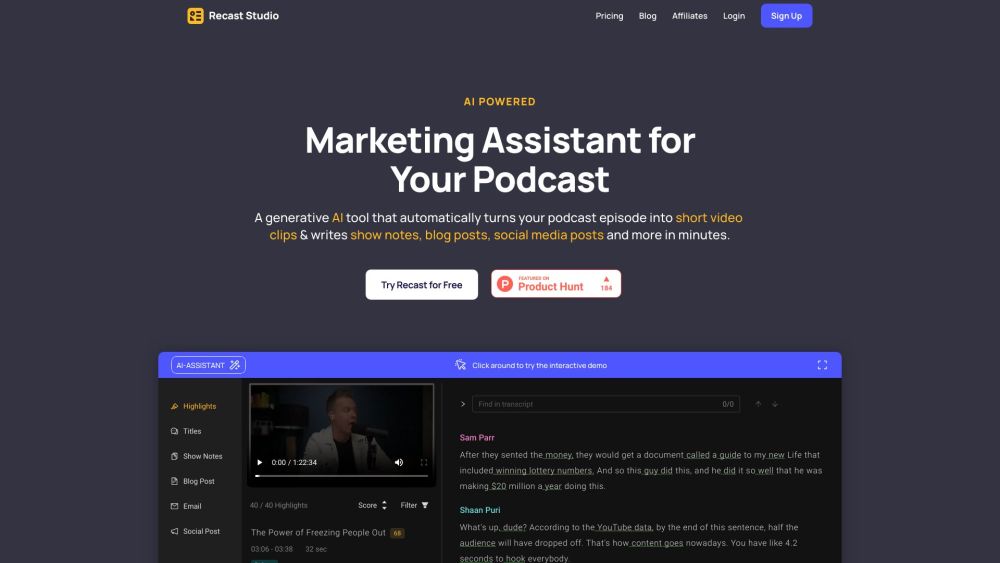 Transform your podcast into captivating content using Artificial Intelligence.