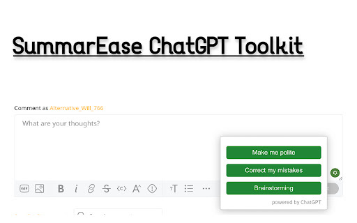 Intelligent tool for generating ideas, correcting errors, enhancing politeness, and summarizing content.