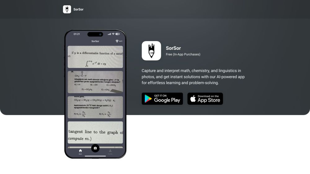 SorSor is an Artificial Intelligence application for quick mathematics, chemistry, and language solutions.