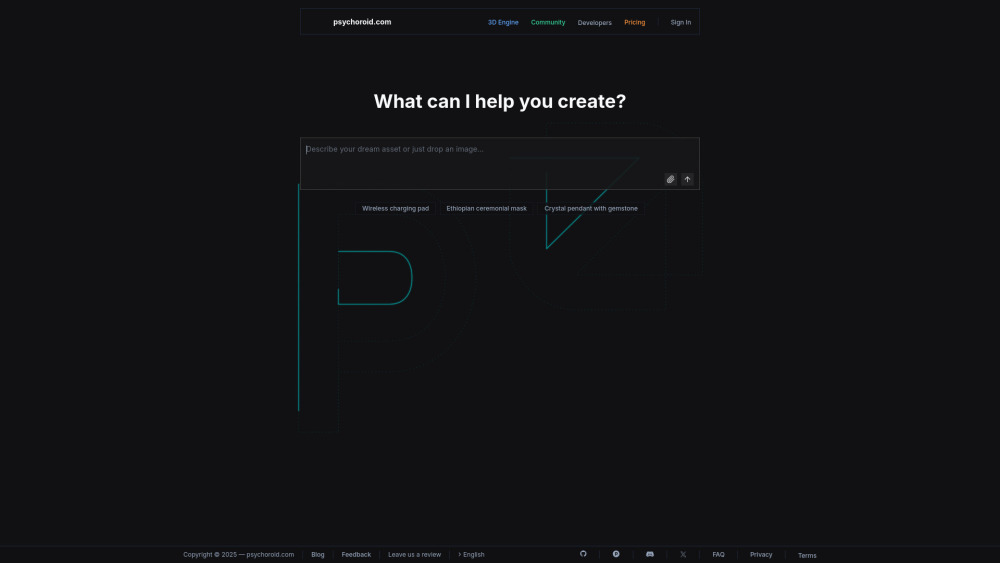 Artificial Intelligence driven 3D creation tool for making visuals and scenes.