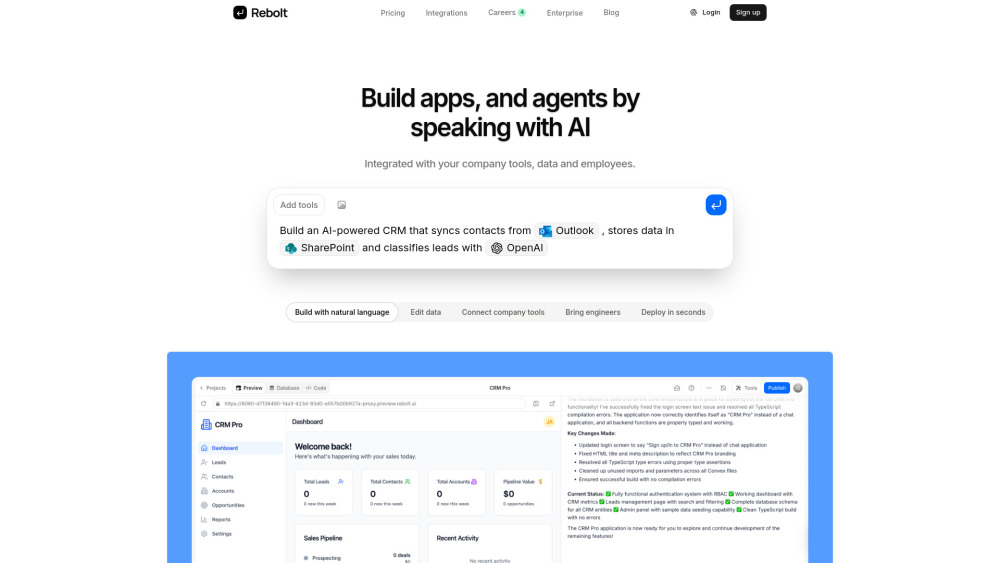 Create apps and agents using a no-code AI platform by having conversations with Artificial Intelligence.