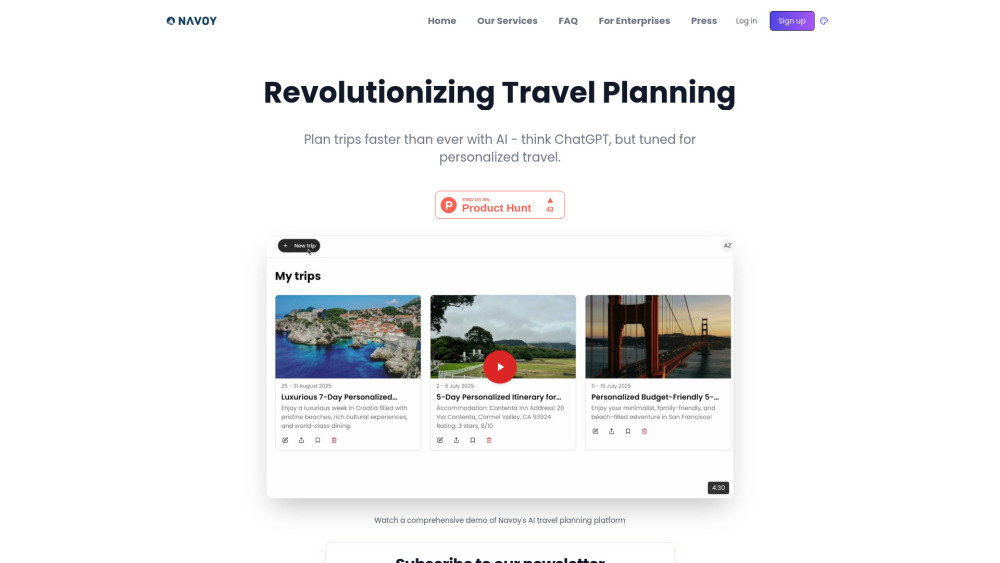 Discover an AI-powered travel planning app designed to create customized trip plans.