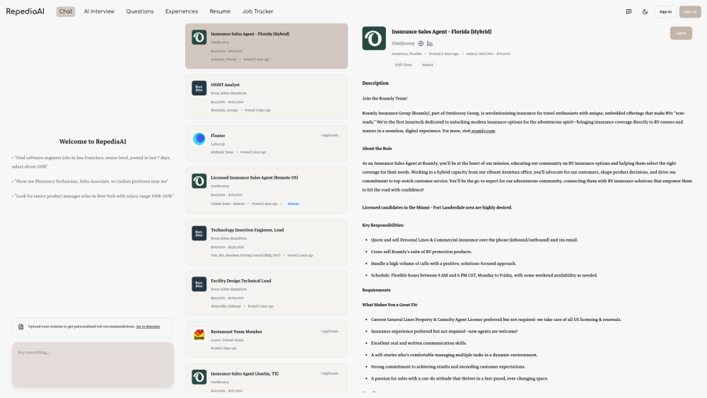 Mobile job search assistant powered by Artificial Intelligence helps with resumes, cover letters, interviews, and job tracking.