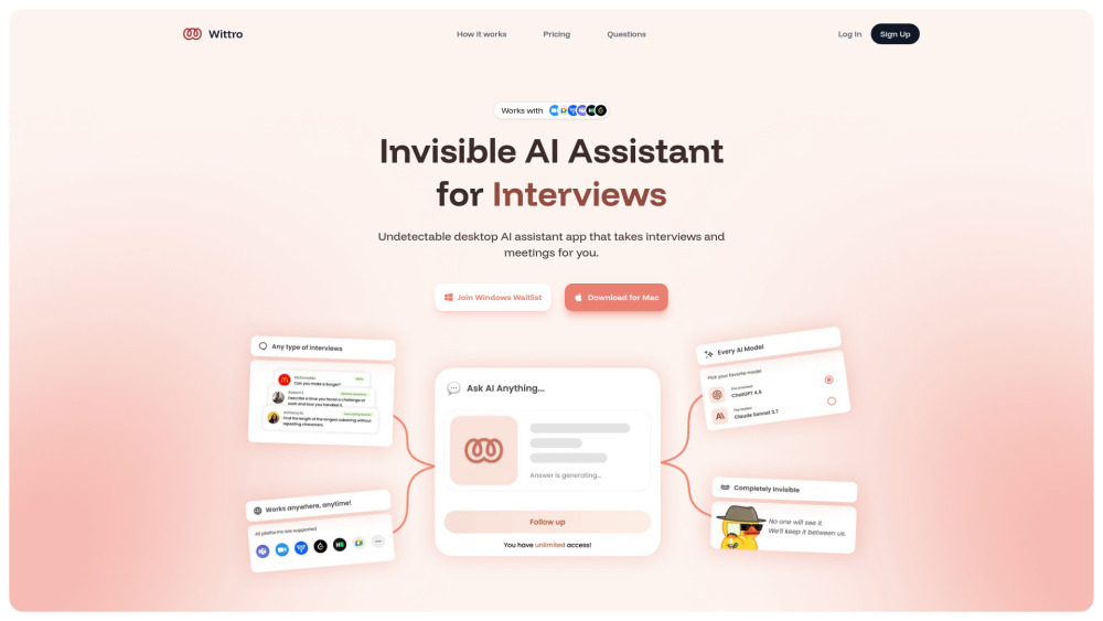 AI-powered tool offering instant, discreet assistance with coding during technical interviews.