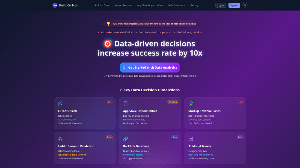 A platform powered by data for exploring startup ideas, examining market trends, and gaining revenue insights.