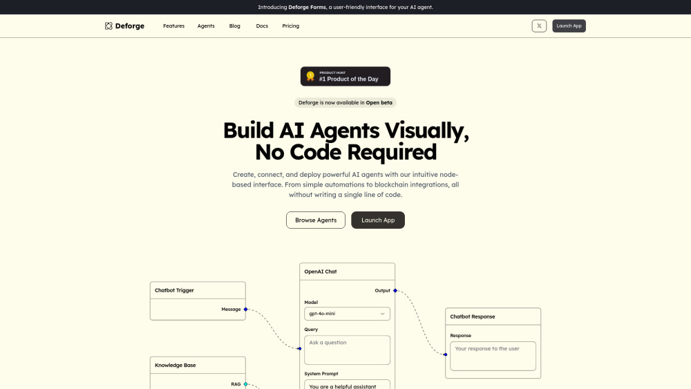 A visual platform that doesn't require coding, for creating and launching AI agents.