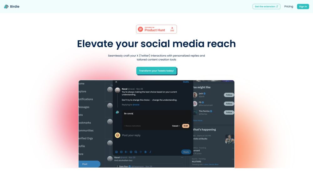 Enhance your online visibility using Birdie, an innovative AI solution designed for crafting X/Twitter responses.