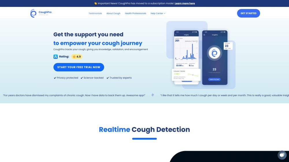 CoughPro is a top-ranked application for detecting coughs, assisting users in monitoring and comprehending their cough patterns through real-time tracking and informative analysis.