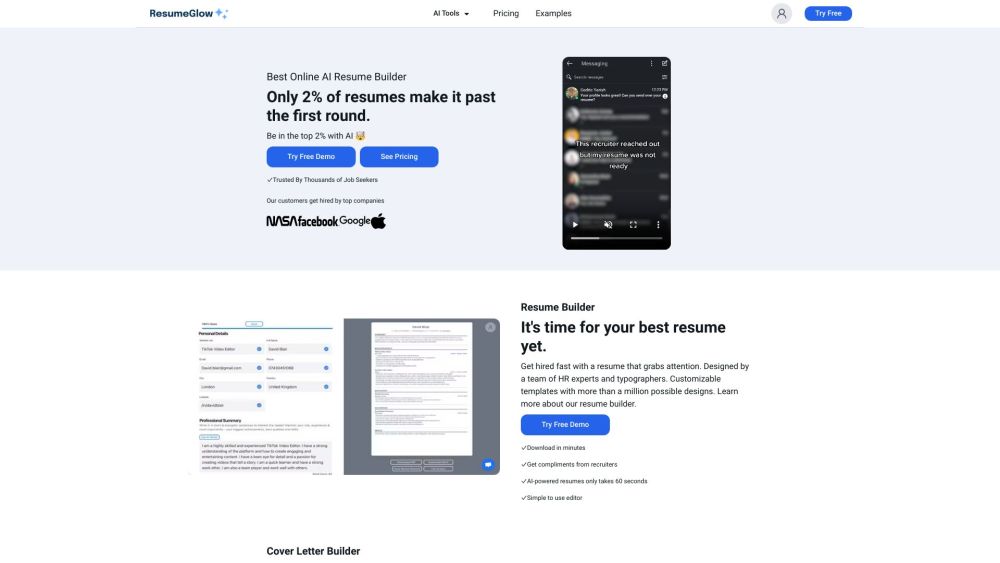 ResumeGlow's AI technology assists in creating a resume that quickly attracts potential employers.