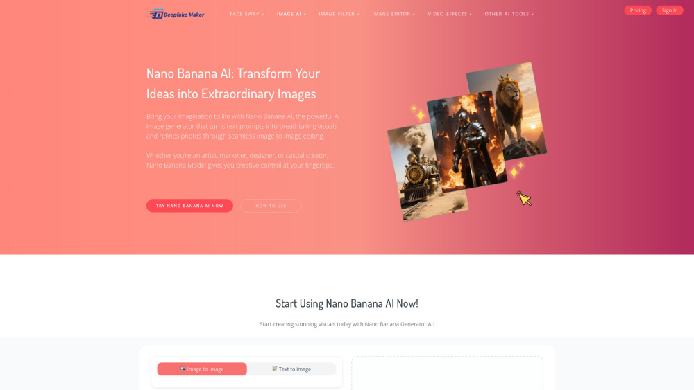 Nano Banana AI is a sophisticated AI-driven tool created for transforming text into images and editing images. It uses state-of-the-art algorithms and easy-to-use controls, allowing creators, designers, and regular users to produce excellent visuals with ease.