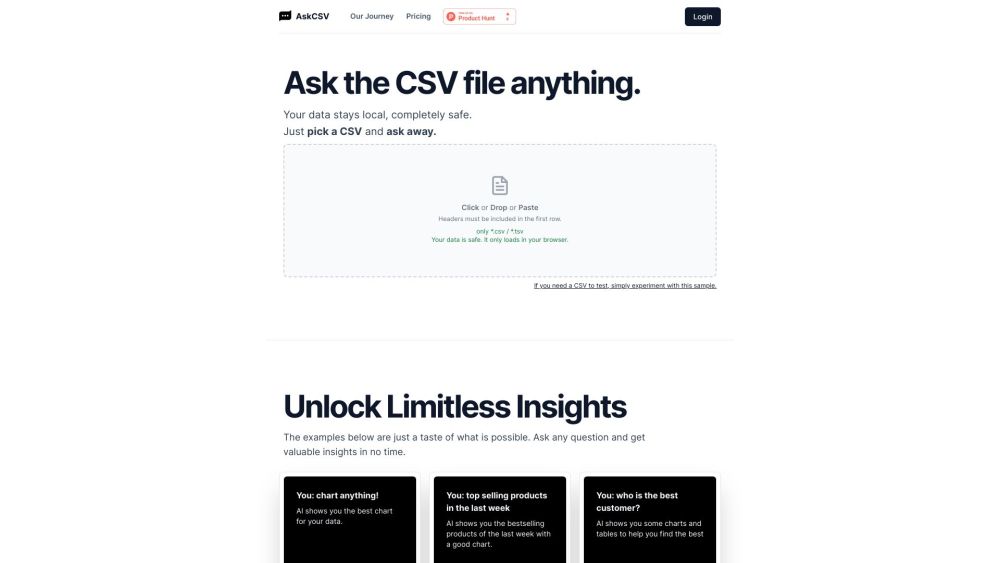 AskCSV is a helpful data analysis tool designed to make analyzing and visualizing data stored in CSV files easier.