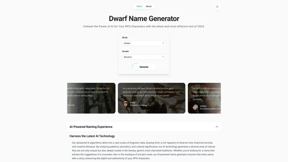 An Artificial Intelligence-based tool creates unique names for fantasy Dwarf characters in role-playing games.