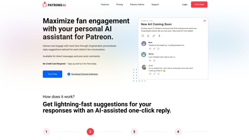 Patreon users can boost engagement with their supporters by utilizing patronsAI's tailored response ideas.
