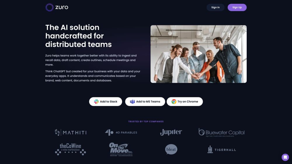 Zuro is a business teamwork enhancer using AI technology.