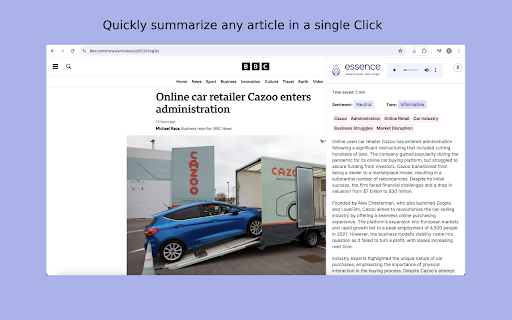 Essence - Read Smarter - Chrome Extension is a useful tool that helps you quickly and accurately summarize web articles.