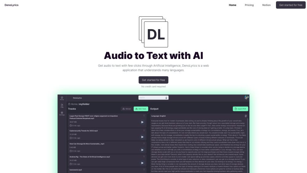 DenoLyrics is a web application that uses an Artificial Intelligence model for converting speech into text, creating captions, and translating content into 143 different languages.