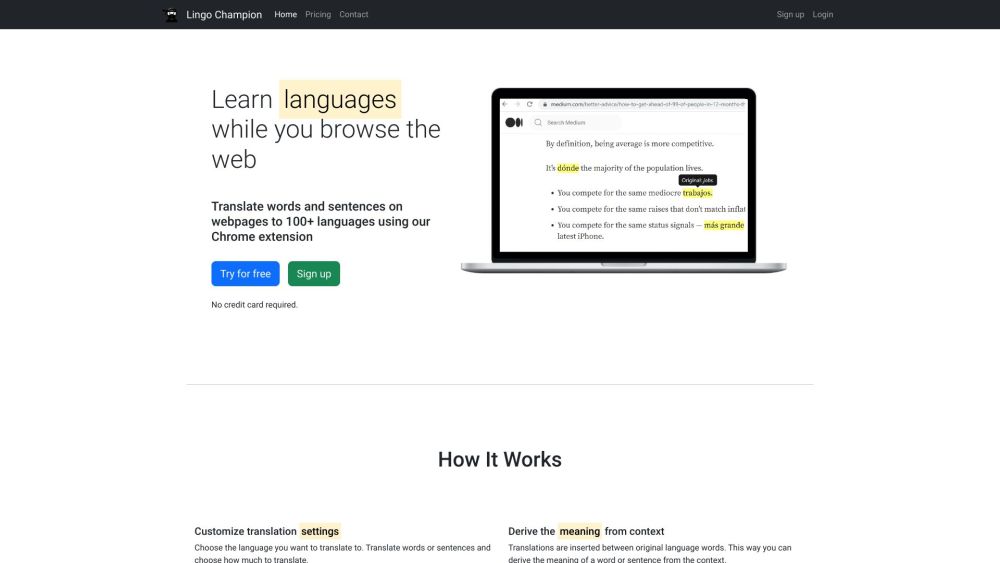 Discover new languages easily while you surf the internet with Lingo Champion.