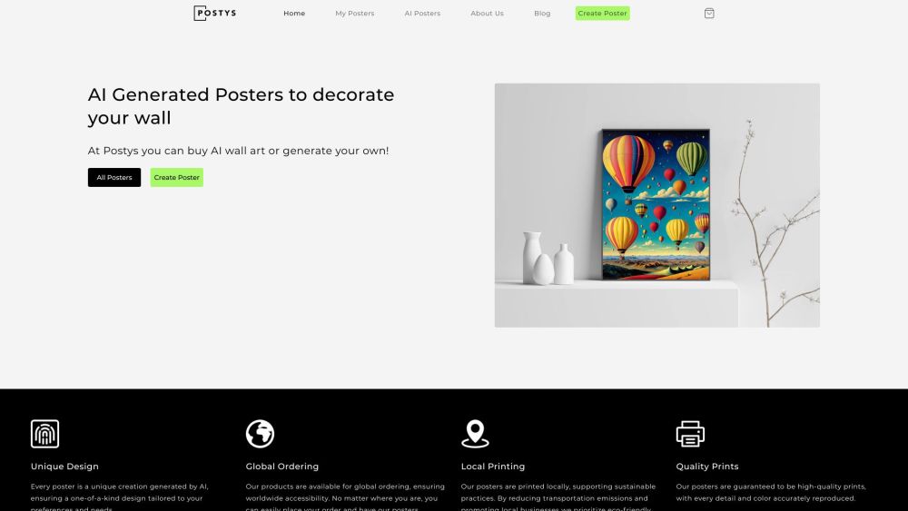 A web-based service, Postys, provides specially designed AI-created posters for home or workplace decoration.