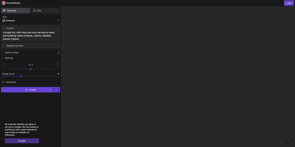 DreamStudio utilizes Artificial Intelligence to create images online, powered by Stability.ai's cutting-edge technology.