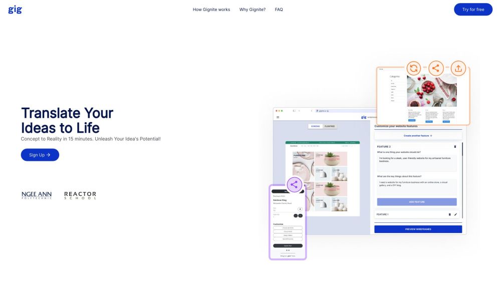 Gignite.ai is a tool that uses Artificial Intelligence to help people without coding skills create a Minimum Viable Product.