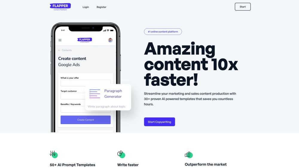 Flapper.ai is a helpful tool that uses Artificial Intelligence to support sales and marketing teams, saving them time by providing pre-made templates.