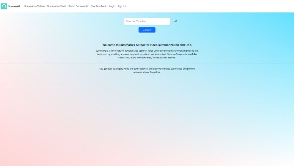 SummarQ offers free smart summaries of YouTube videos and Q&A with AI-powered ChatGPT.
