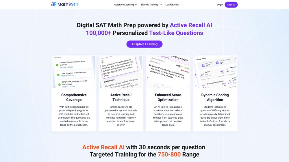 Math99th uses AI to prepare students digitally for the SAT Math test.