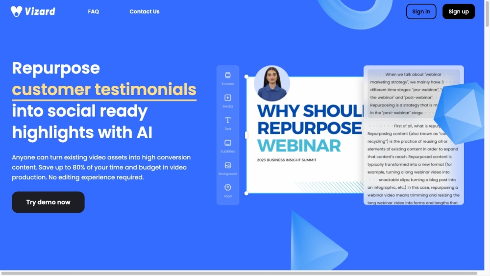 Vizard.ai allows users to rapidly produce popular social media videos using editing tools driven by Artificial Intelligence.