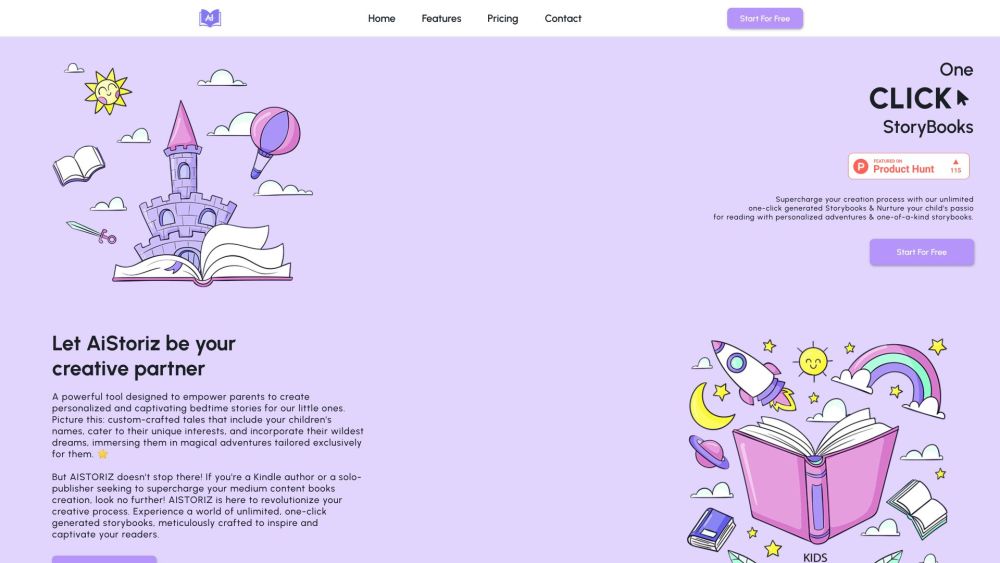 AISTORIZ is a platform utilizing Artificial Intelligence to instantly generate storybooks with just a single click.