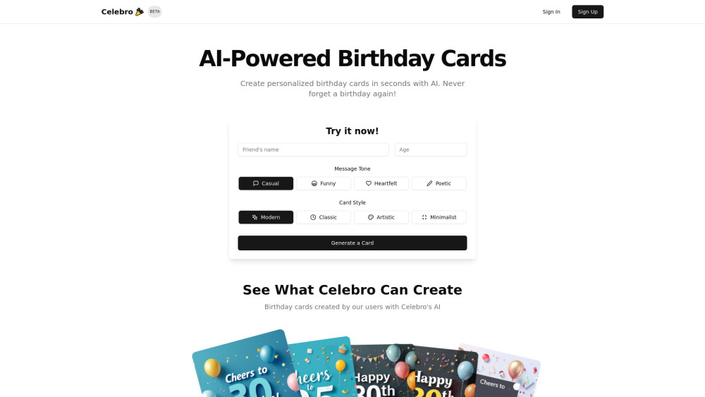 An innovative AI platform designed to create customized birthday cards and send timely reminders.