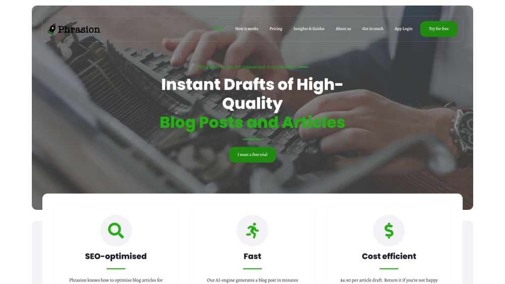 Phrasion is a highly advanced Artificial Intelligence tool designed to generate content rapidly and with great efficiency.