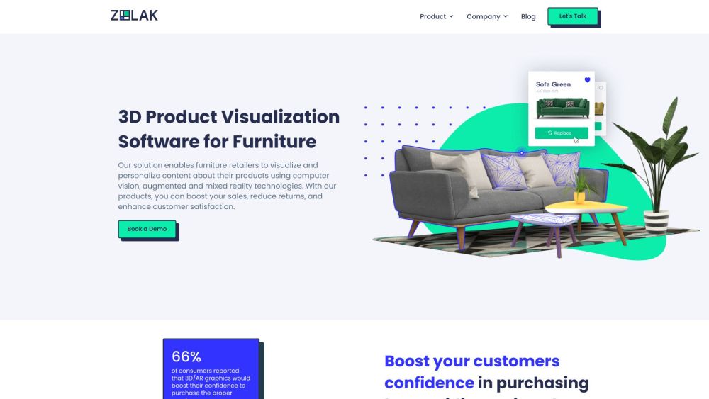 Zolak offers a 3D visualization tool specifically designed for furniture retailers, which greatly improves the overall shopping experience.