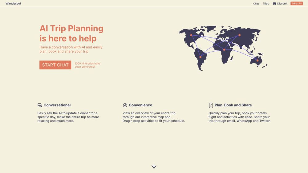 Travel platform powered by Conversational AI for personalized trip suggestions.
