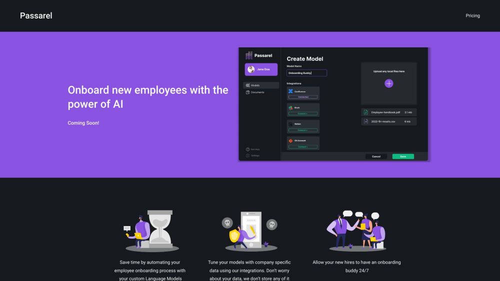 Passarel is an Artificial Intelligence platform that allows companies to onboard new employees using specially designed language models.