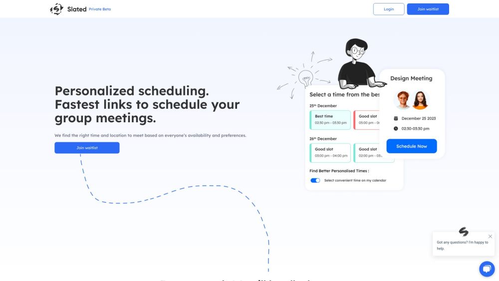 Slated is a tool designed to organize group meetings by taking into account the availability and preferences of the participants.