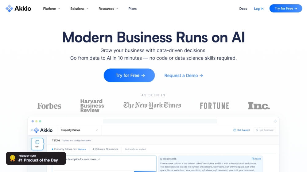 Akkio is a simple and easy-to-use system for examining data and combining it with Artificial Intelligence.