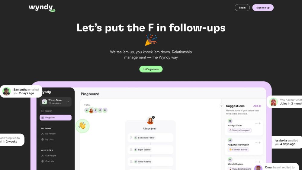 Wyndy is a platform designed to keep users in touch with their contacts and handle follow-up tasks effectively.