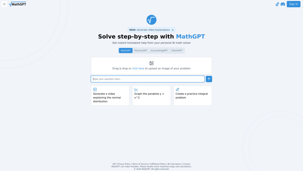MathGPT is an AI tool designed to assist with solving math problems and creating educational videos.