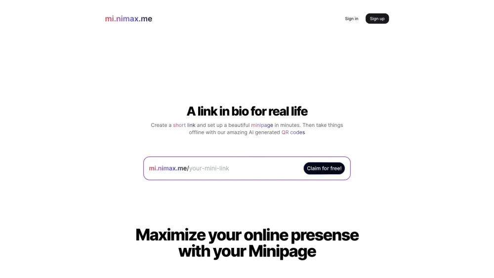 Concise web links, visually appealing mini web pages, Artificial Intelligence created QR codes, and business cards