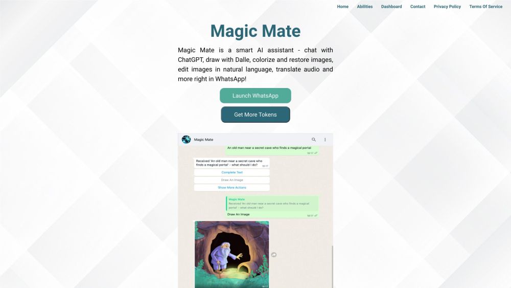 Magic Mate is an Artificial Intelligence assistant for WhatsApp offering advanced functionalities including conversation, image modification, and language conversion.