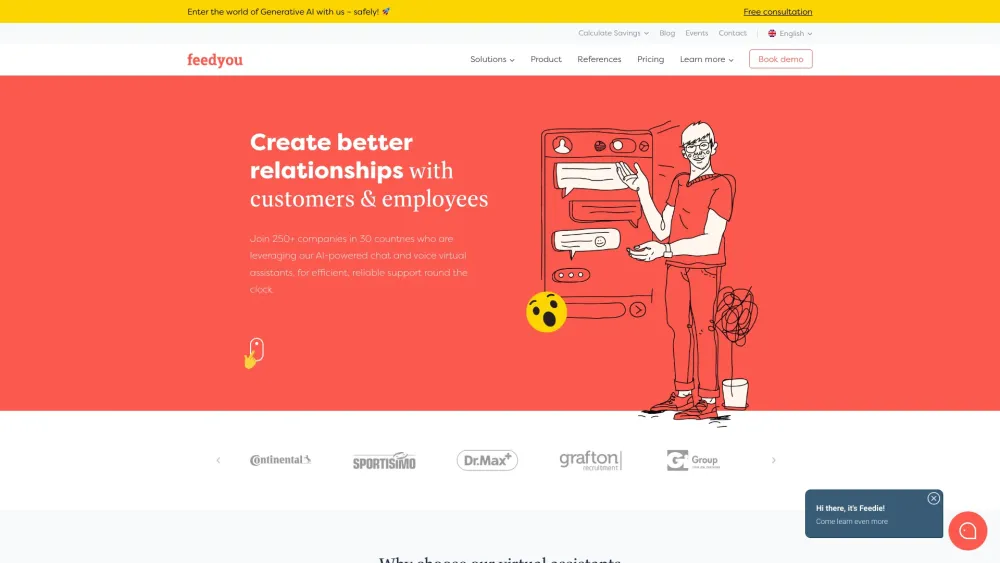 Virtual assistants powered by AI technology assist customers and employees through chat and voice support.