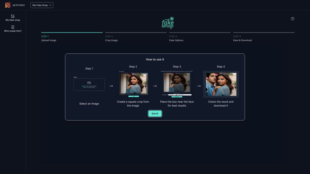 Make and distribute artificial selfies with genuine-looking fake images using My Fake Snap.